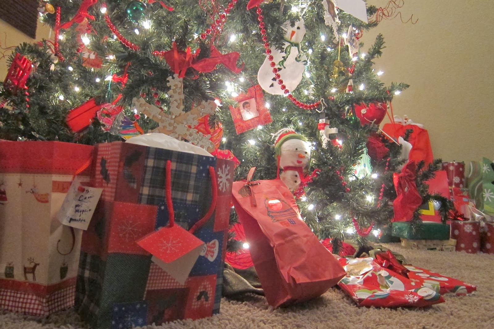 Since we had wrapped the gifts earlier, we took them out of hiding and placed them around the tree.